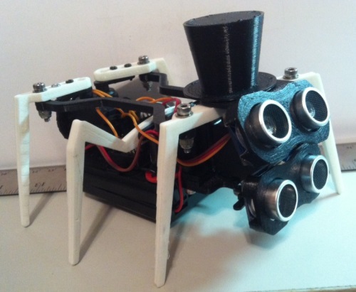 I had already built a three servo walker with my "White Legged Spider Monkey" but really liked how his walker looked and having just gotten my 3D printer working for the most part at the time figured it was worth a print and build. I wanted to mix up the colors a bit and printed the body and connecting rods in black and the legs in white. Yeah, I know, I already have another "White Legged Spider" kind of thing but B&W looks nice.